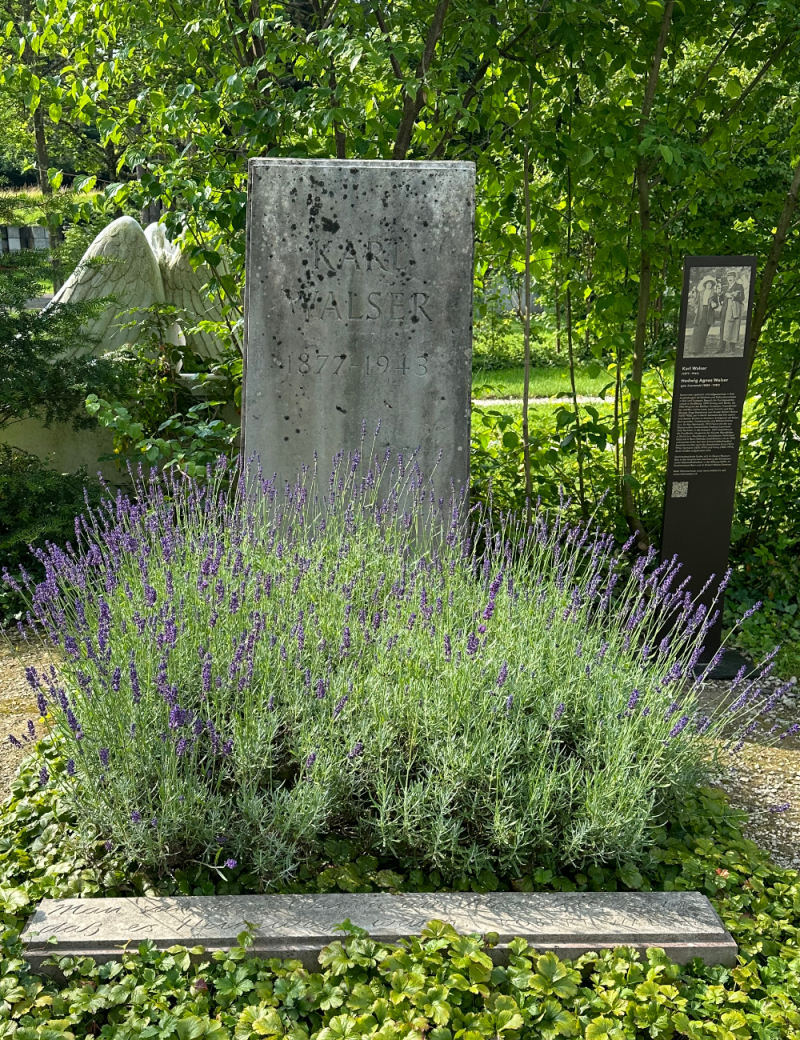 Zusammen mit dem Schosshaldenfriedhof pflegt das Robert Walser-Zentrum das Grab des 1943 verstorbenen Künstlers Karl Walser und seiner 1987 verstorbenen Ehefrau Hedwig.