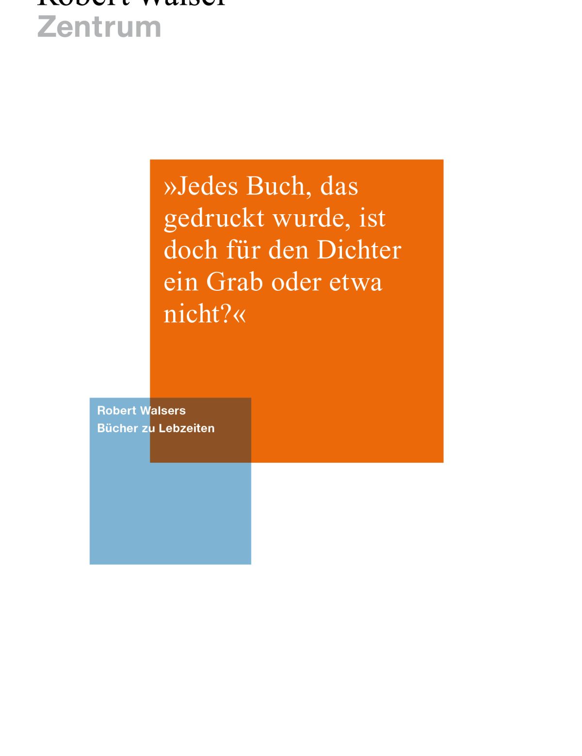 Reto Sorg u. Lucas Marco Gisi (Hrsg.): »Jedes Buch, das gedruckt wurde, ist doch für den Dichter ein Grab oder etwa nicht?« Robert Walsers Bücher zu Lebzeiten, 47 S. (Schriften des Robert Walser-Zentrums; 1), Robert Walser-Zentrum: Bern 2009, 47 S., ISBN: 978-3-9523586-0-3, 9.50 CHF